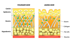 Changes in the integumentary (or skin) system may be the most visible changes of aging. Hair becomes grey and thins, and skin becomes wrinkled. Nails become harder and more brittle. The skin is the largest organ of our body. Skin serves to protect us from bacteria entering into our bodies, helps regulate our body temperature, helps us to regulate our fluid balance, and allows us to feel sensations such as heat or touch due to the nerve receptors within the skin. As we age, our skin becomes thinner, drier, and more fragile. Changes in the blood vessels within our skin also lead to the skin becoming more easily bruised and to bleeding.