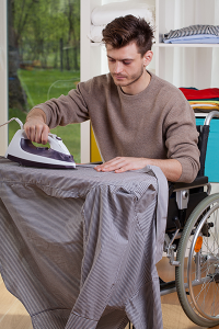 For many patients, Home Health Aides/Personal Care Aides will assist with providing or assisting to provide self-care. The personal care skills learned in previous modules and in future modules in this course will all be used when working with a patient with a physical disability. This includes bathing, skin care, dressing, toileting, feeding, and assisting with ambulation or use of adaptive equipment. Part of the job of a HHA/PCA while working with a person with a physical disability may be to help them learn to safely use adaptive equipment such as eating utensils and transfer devices such as wheelchairs or canes. This will help promote independence for the patient. Home Health Aides/Personal Care Aides should always keep in mind safety risks and work to provide a safe and clean environment for their patient. Ensure there are accessible routes for the patient in case of an emergency. If a patient’s home requires special adaptations to provide for the patient’s safety and independence, such as wheelchair ramps or safety bars in showers, speak with a supervisor about these needs.